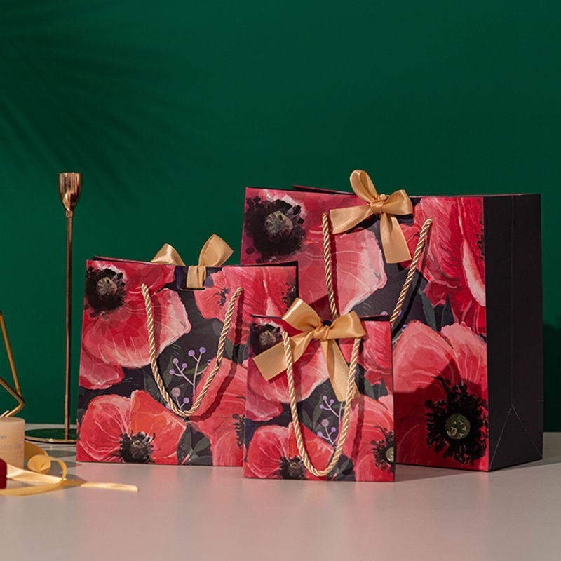 Красная хозяйственная сумка искусства бумажная напечатанная бумажная с ручкой ленты для ходя по магазинам пакета подарка
